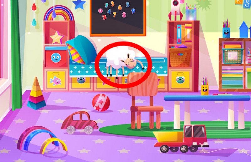 A probléma az egyik játéknál bukkan fel, méghozzá az ágyon szundikáló plüssbáránynál. Ha egy pillanatra megállsz, és megszámolod a lábait, rögtön gyanús lesz a helyzet. Igen, jól látod, ennek a báránynak bizony több lába van, mint kellene. Legalább ötöt számolhatsz össze rajta, és ez volt az a részlet, ami egyáltalán nem stimmelt a képen.